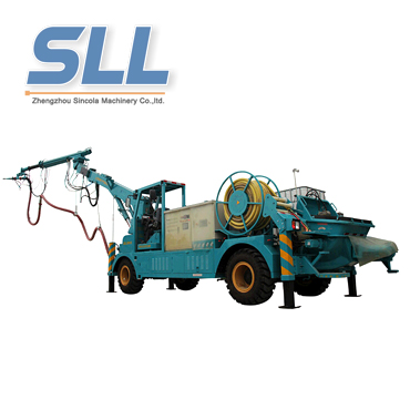 The concrete spraying system refers to the concrete shotcrete machine that operates the nozzle for spraying. There are two ways of walking with rails and tires. The former is suitable for mine roadway injection, the latter is mostly used for tunneling and large section diverticulum project injection.